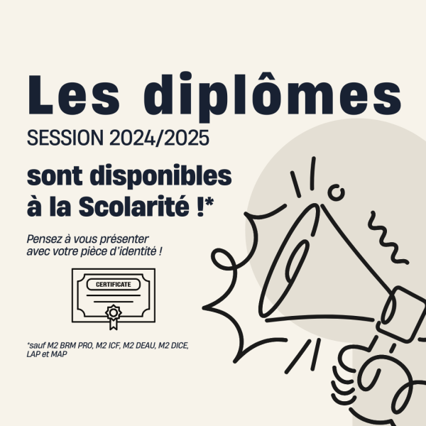 Vous pouvez dès à présent venir retirer vos diplômes à la scolarité si ils font partis de la liste ci-dessous :
