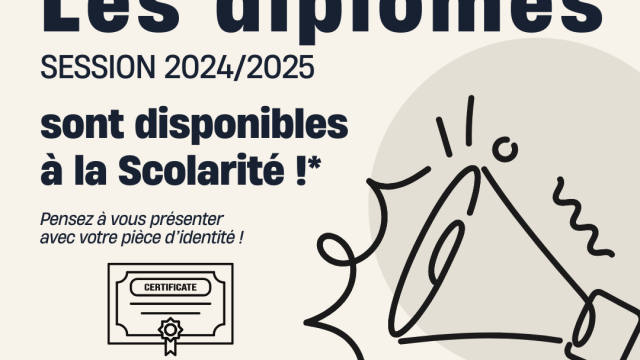 Des diplômes sont disponibles à la scolarité !