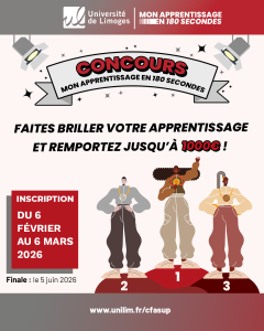 L’Université de Limoges (DFCA & DORI) organise sa première édition du concours « Mon apprentissage en 180 secondes ».