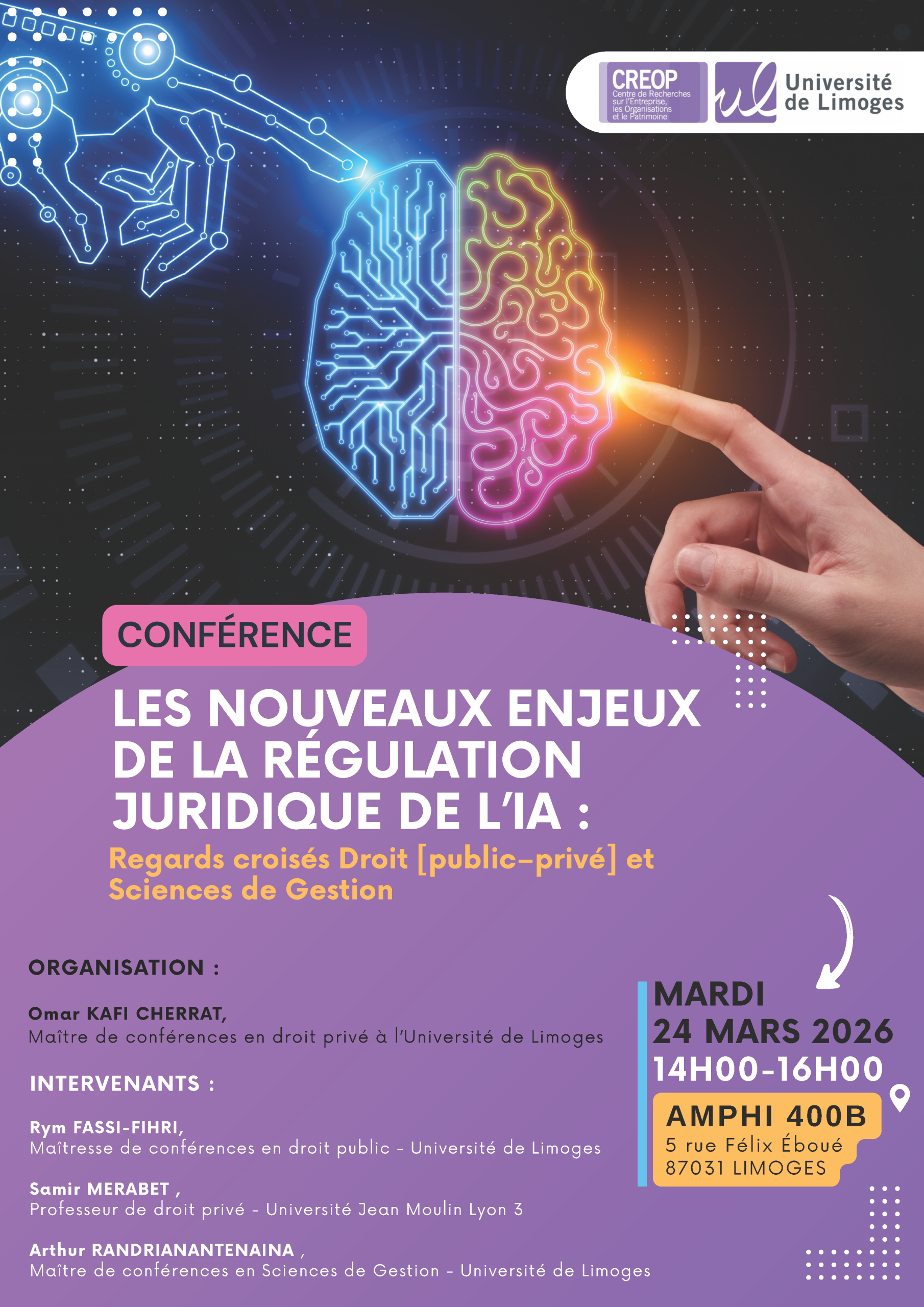 Les nouveaux enjeux de la régulation juridique de l’IA : regards croisés Droit [public – privé] et Sciences de gestion.